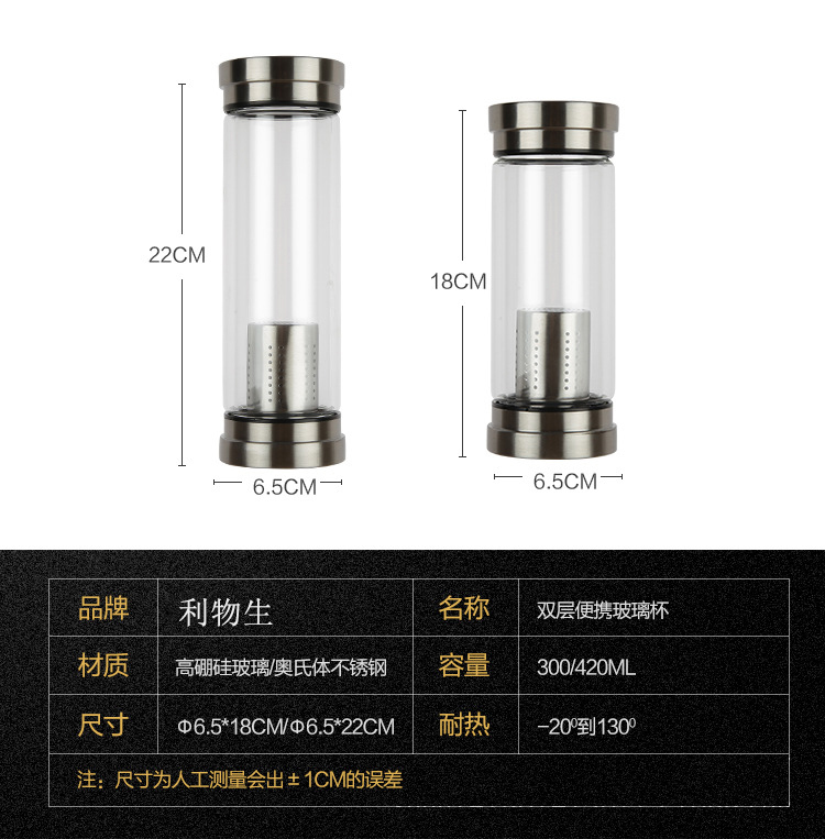 新款熱銷(xiāo)雙層泡茶師 雙層玻璃旅行茶杯 登山攜帶方便雙層玻璃杯杯子