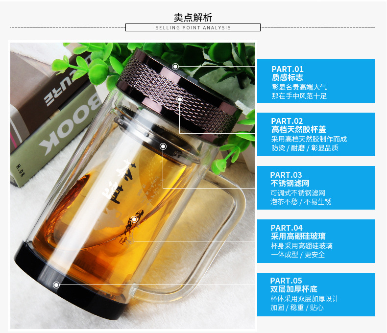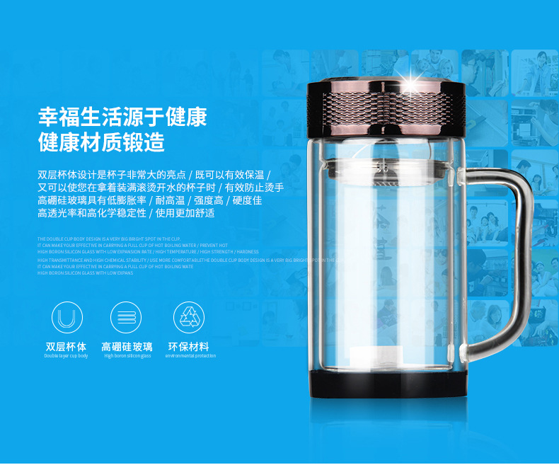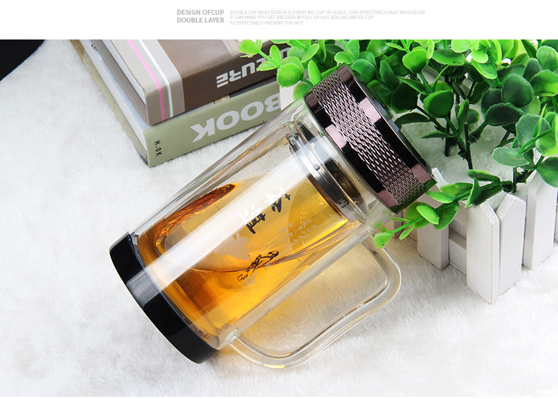 廣東蕾洛商用廚房設(shè)備定制高檔雙層水晶玻璃杯商務(wù)帶手柄水杯