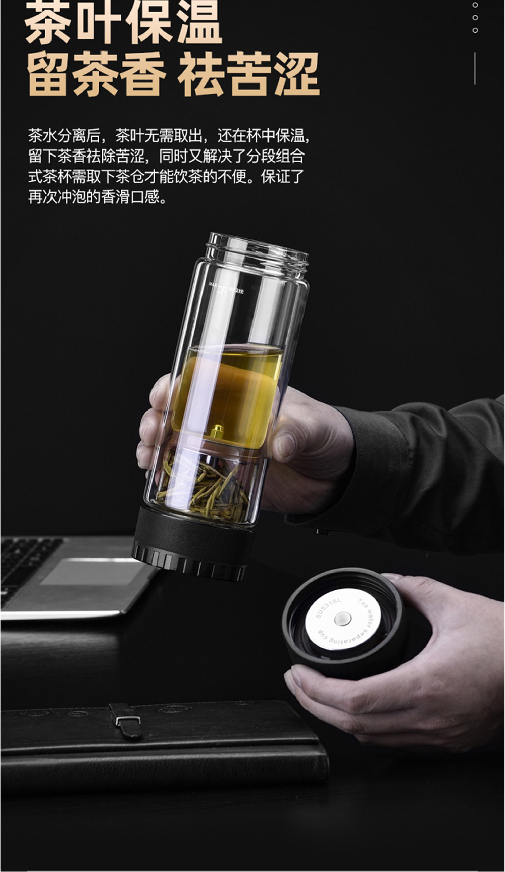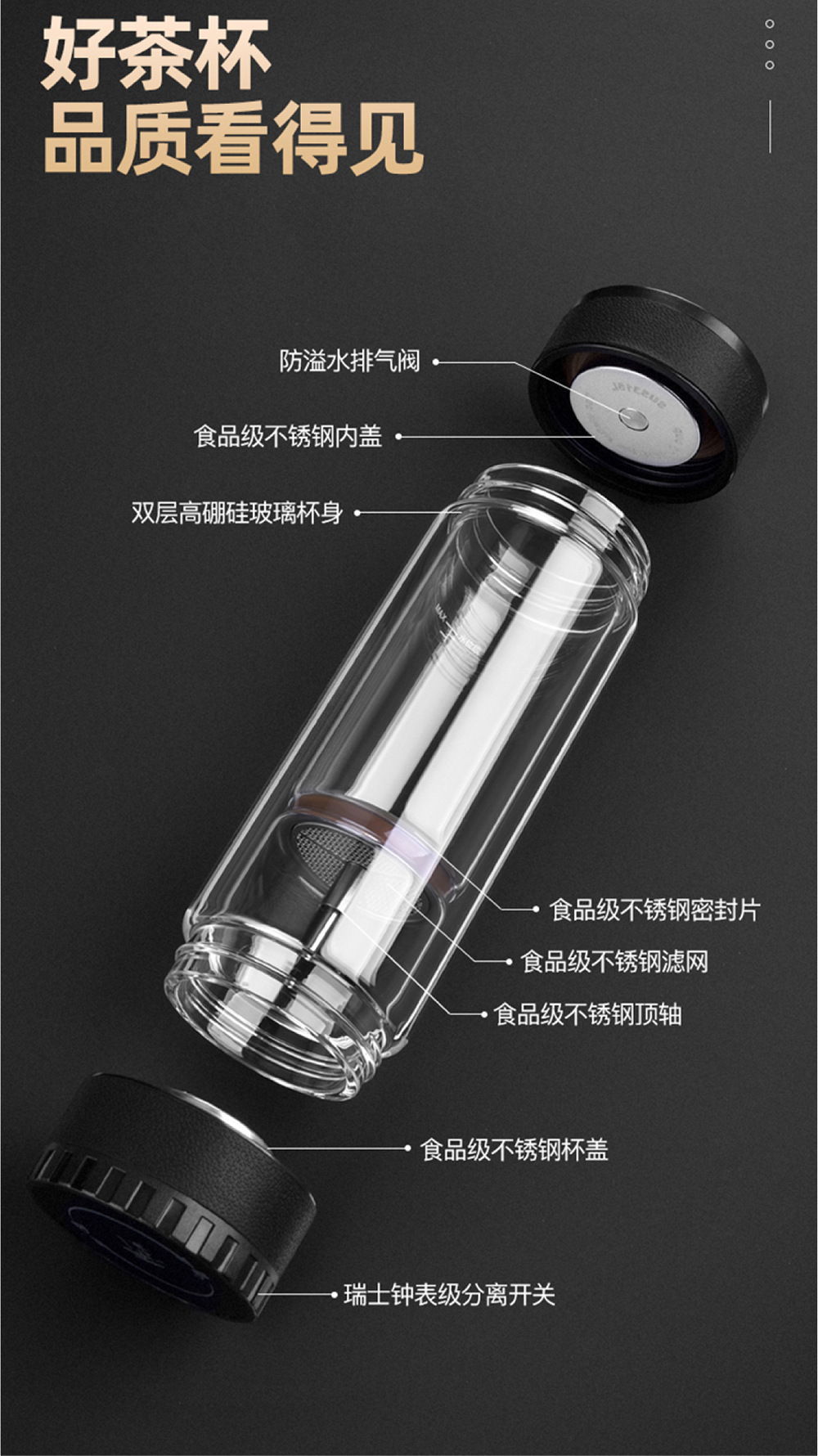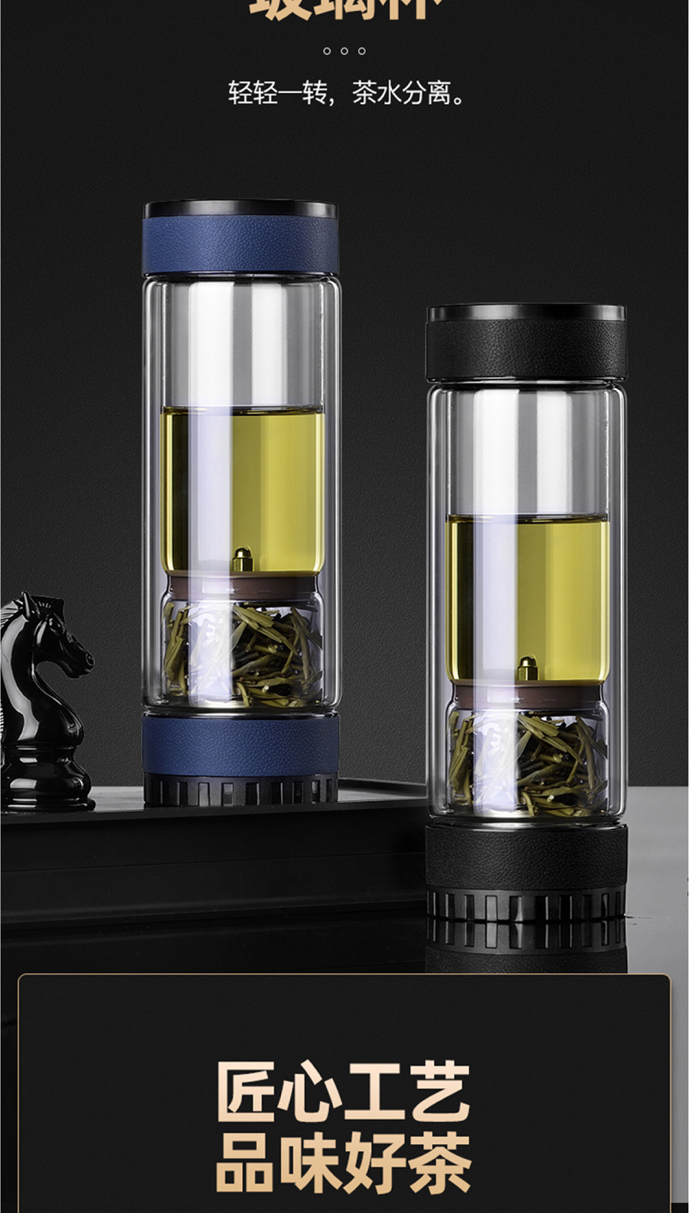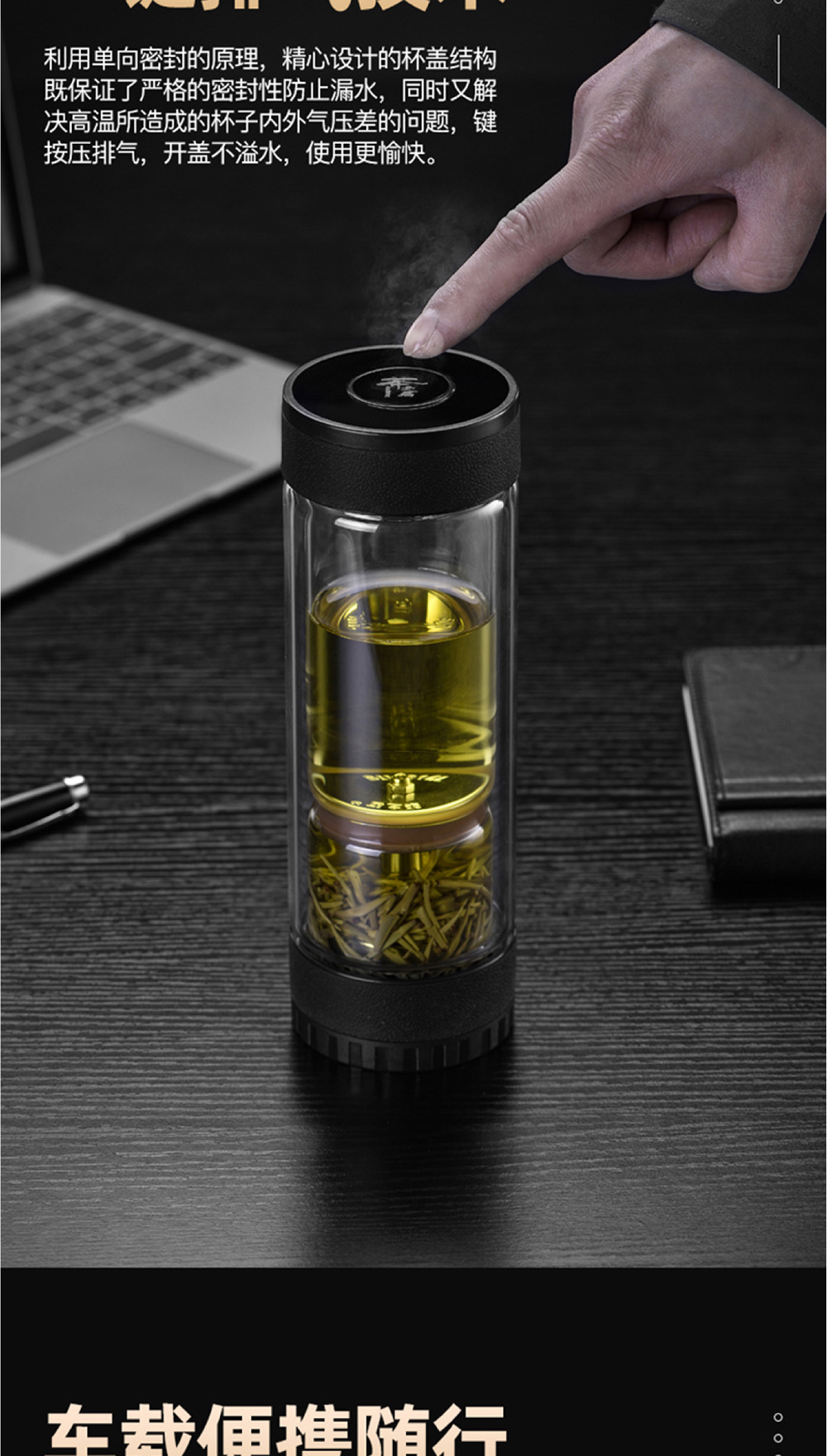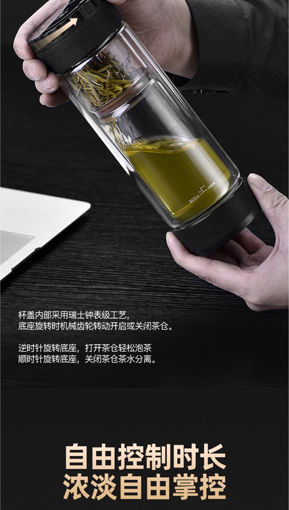茶水分離泡茶師商務(wù)雙層玻璃杯定制禮品杯旋轉(zhuǎn)開關(guān)茶杯印logo水杯