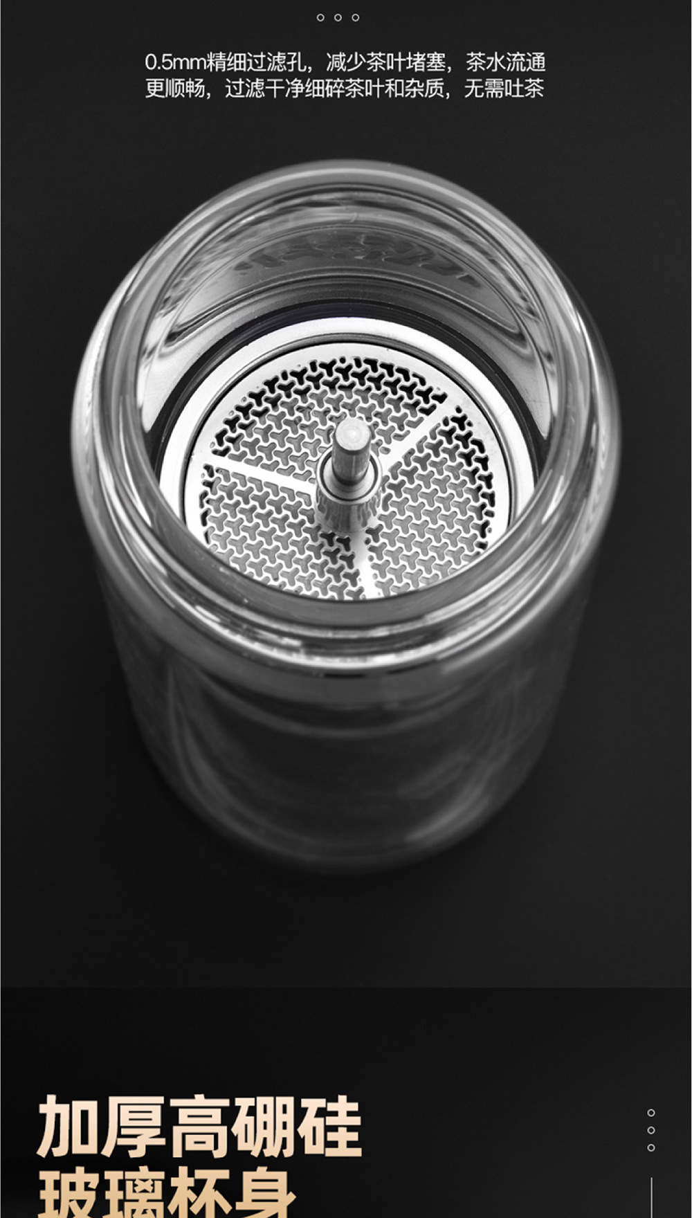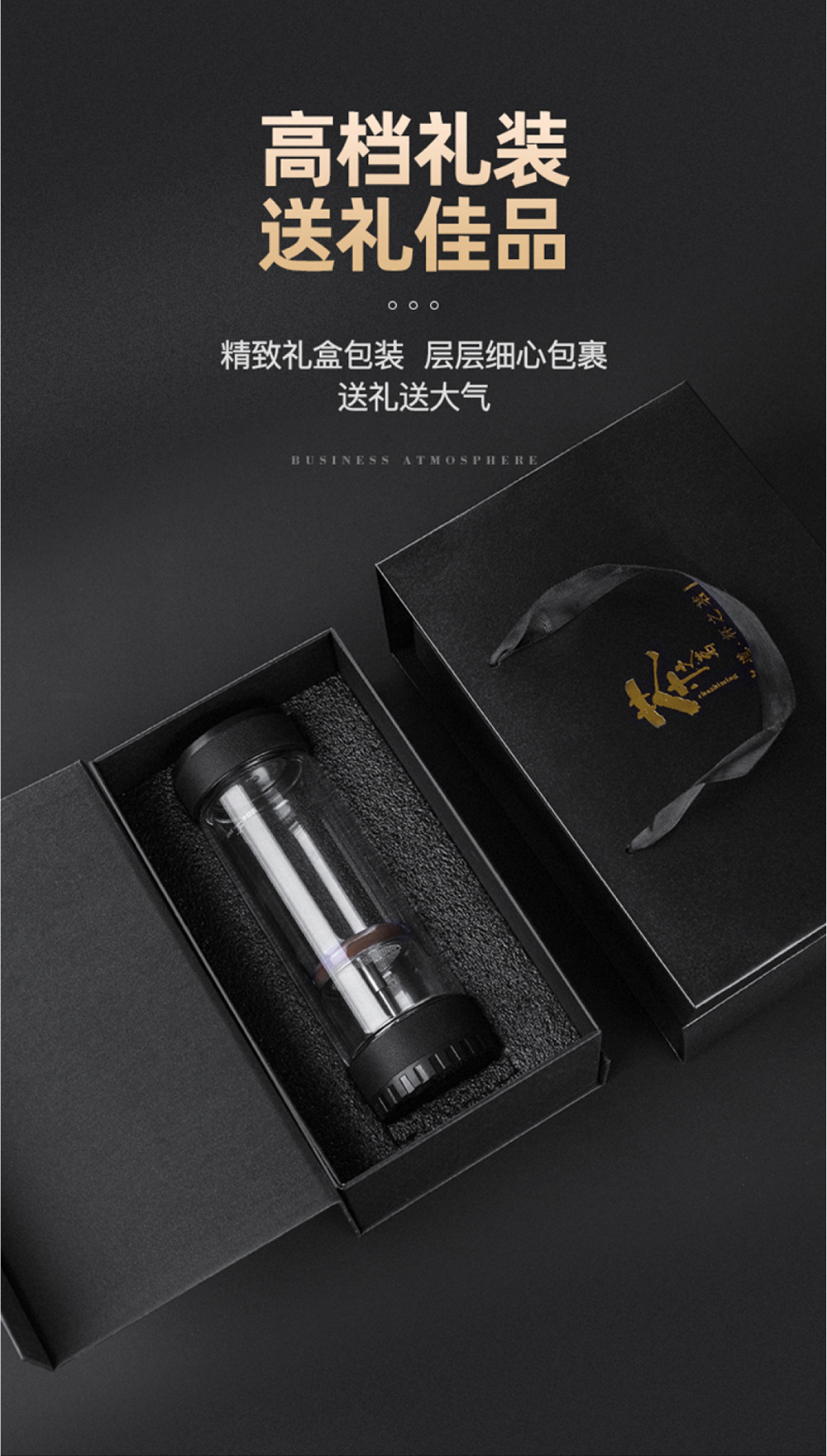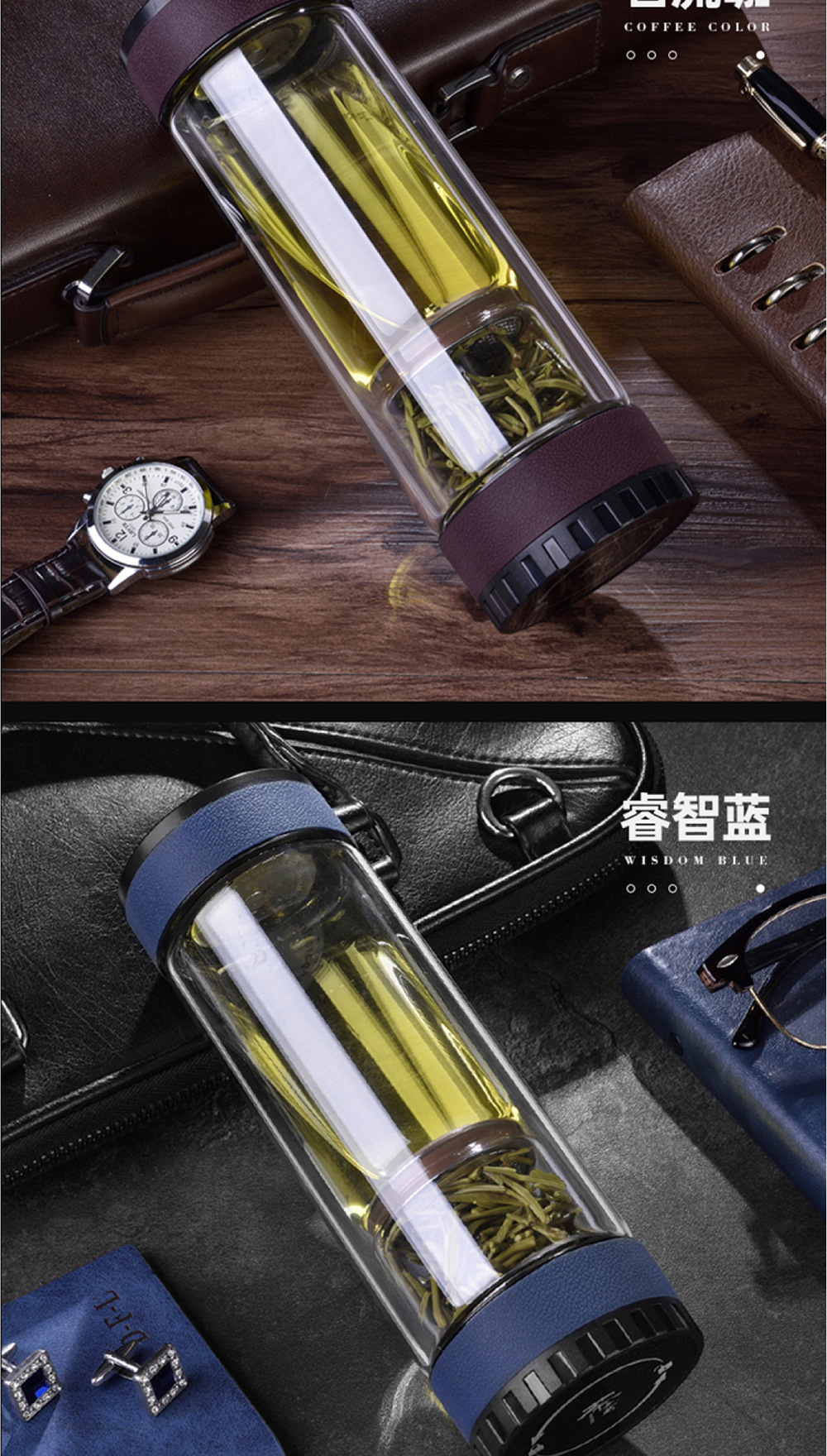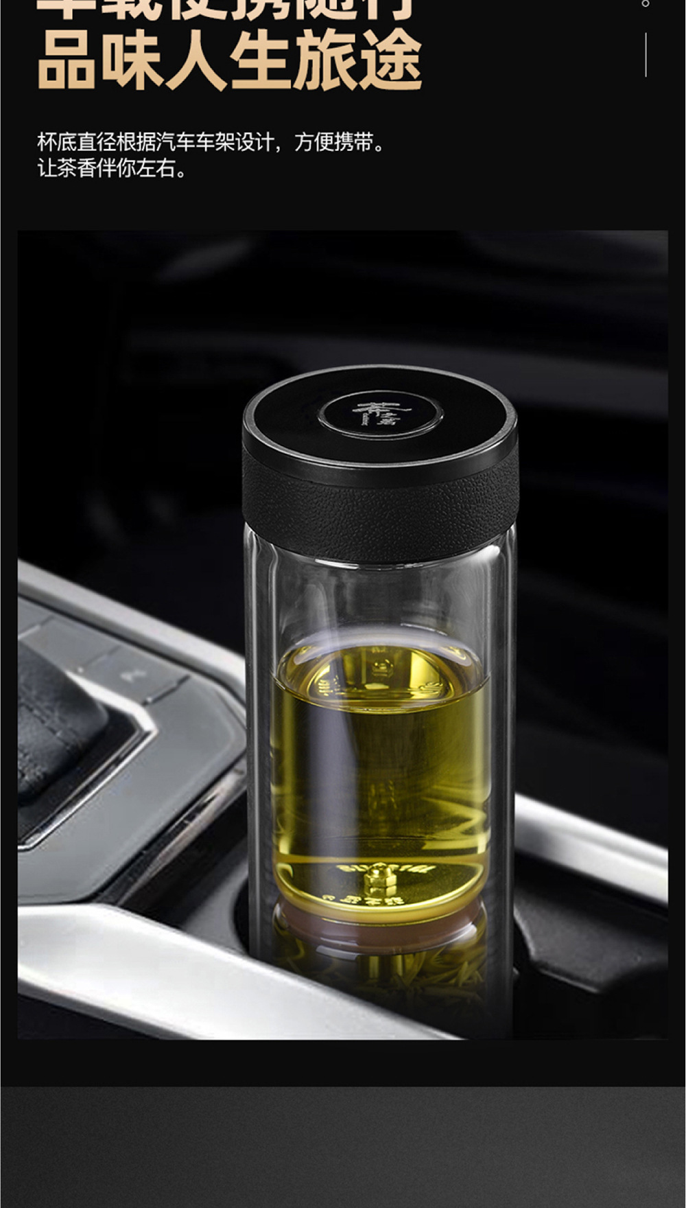 茶水分離泡茶師商務(wù)雙層玻璃杯定制禮品杯旋轉(zhuǎn)開關(guān)茶杯印logo水杯