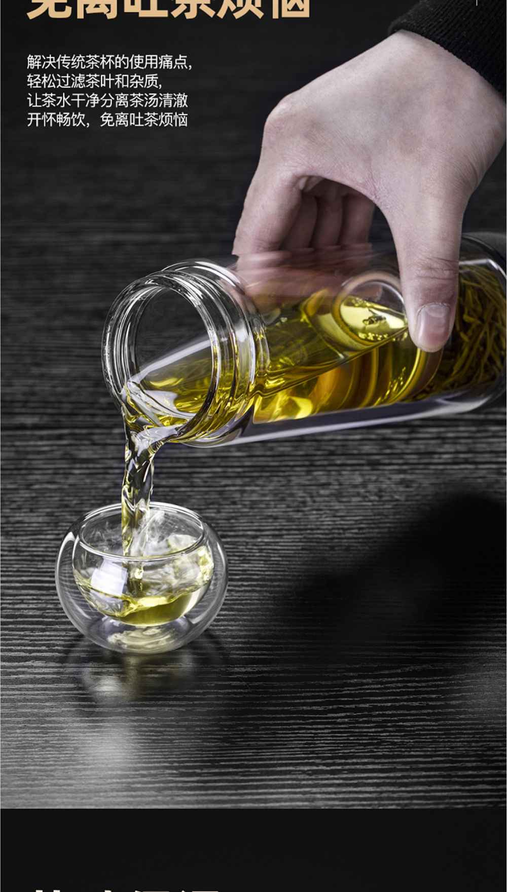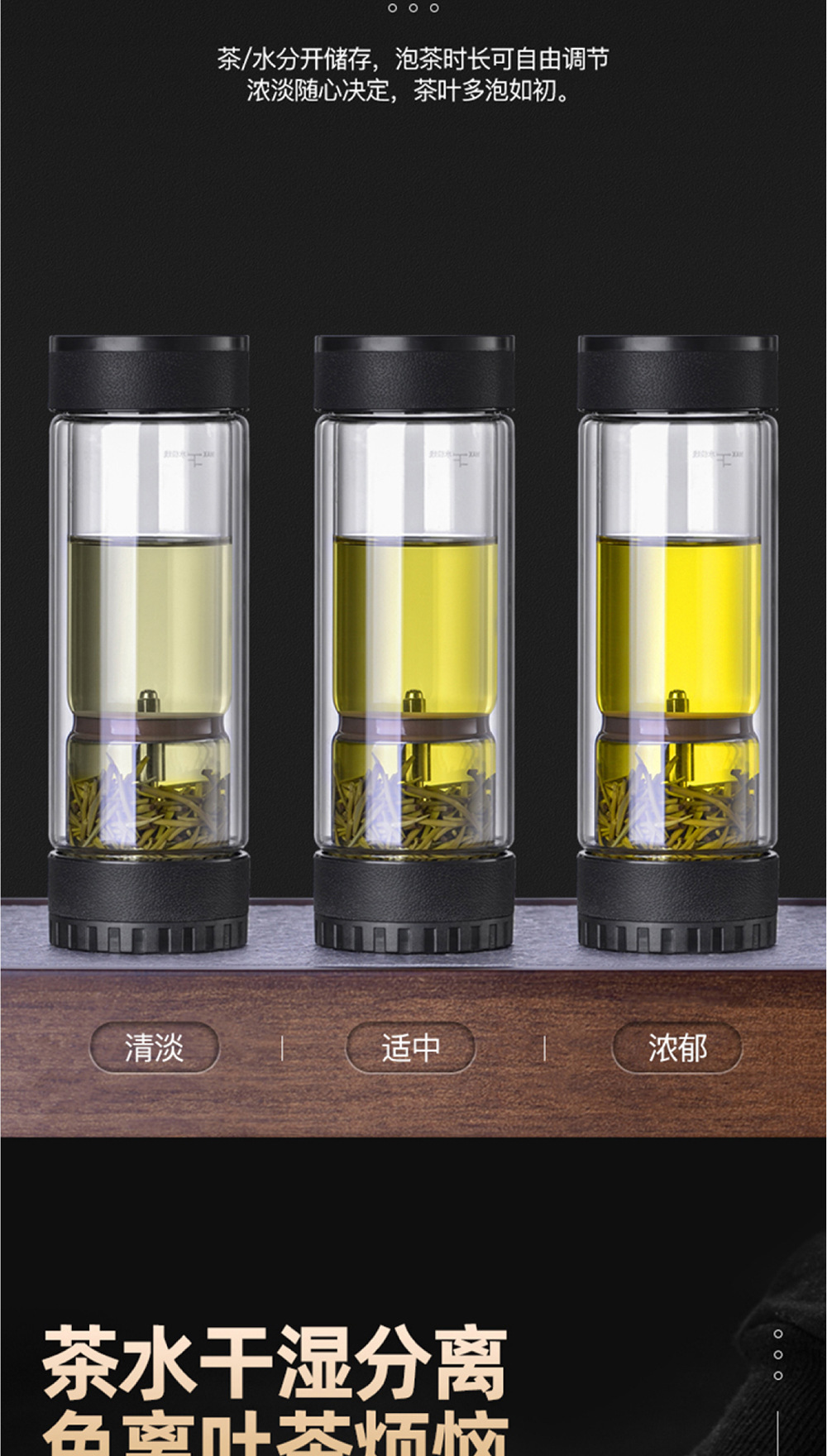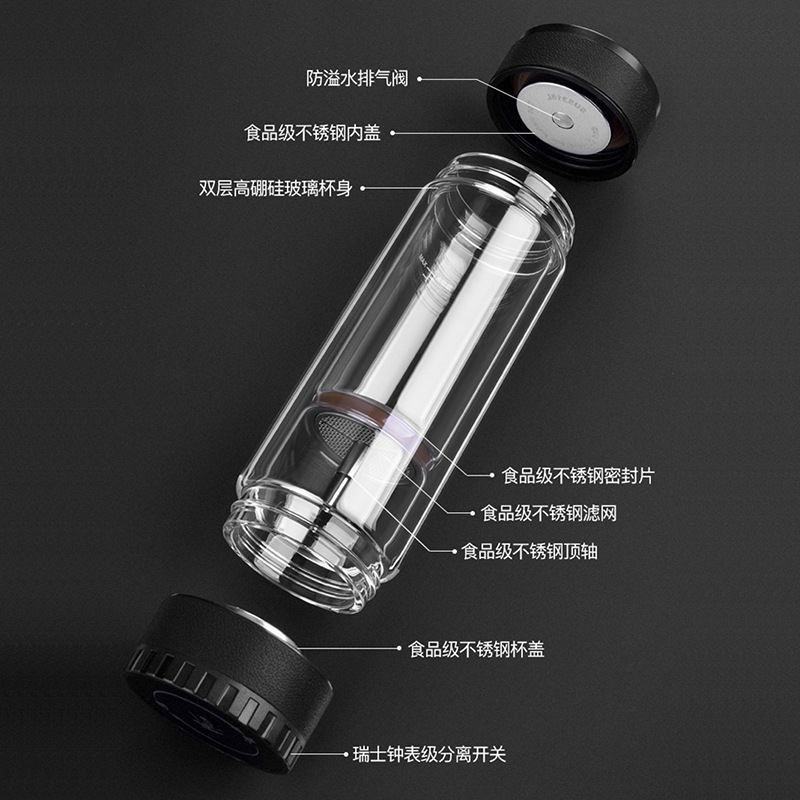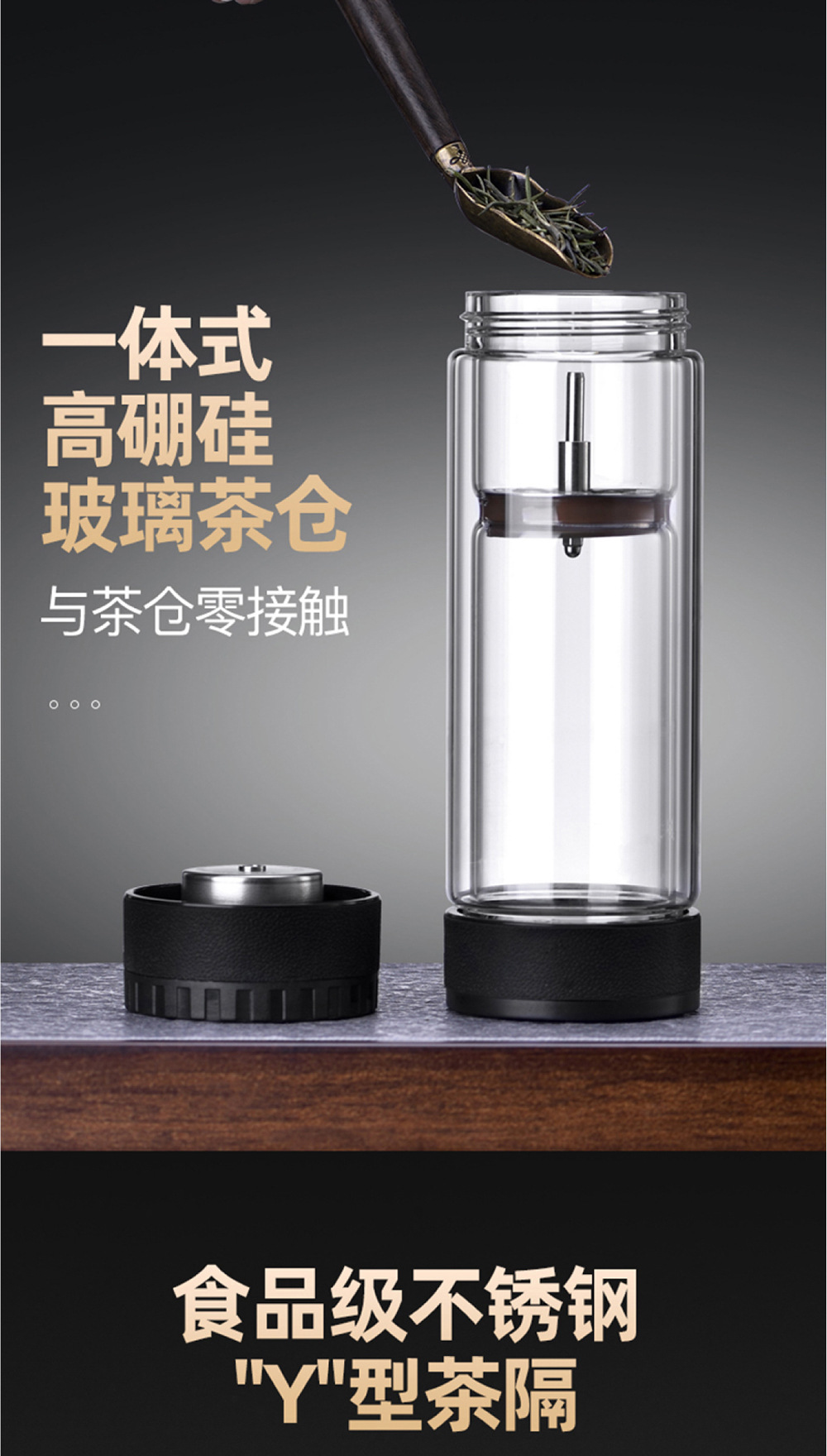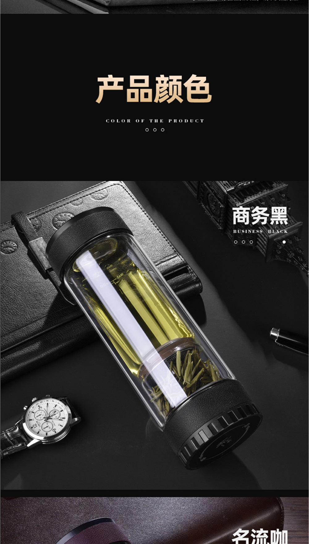 茶水分離泡茶師商務(wù)雙層玻璃杯定制禮品杯旋轉(zhuǎn)開關(guān)茶杯印logo水杯