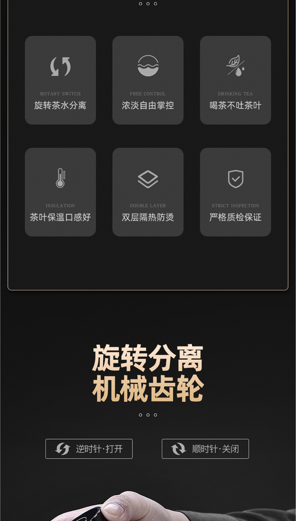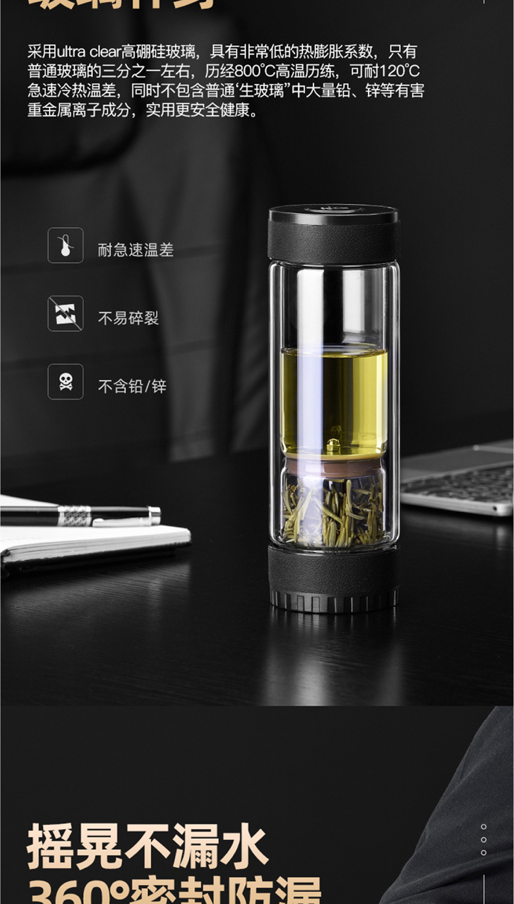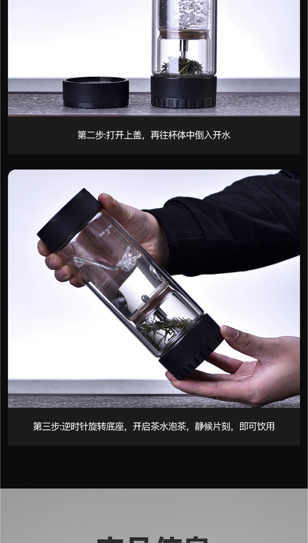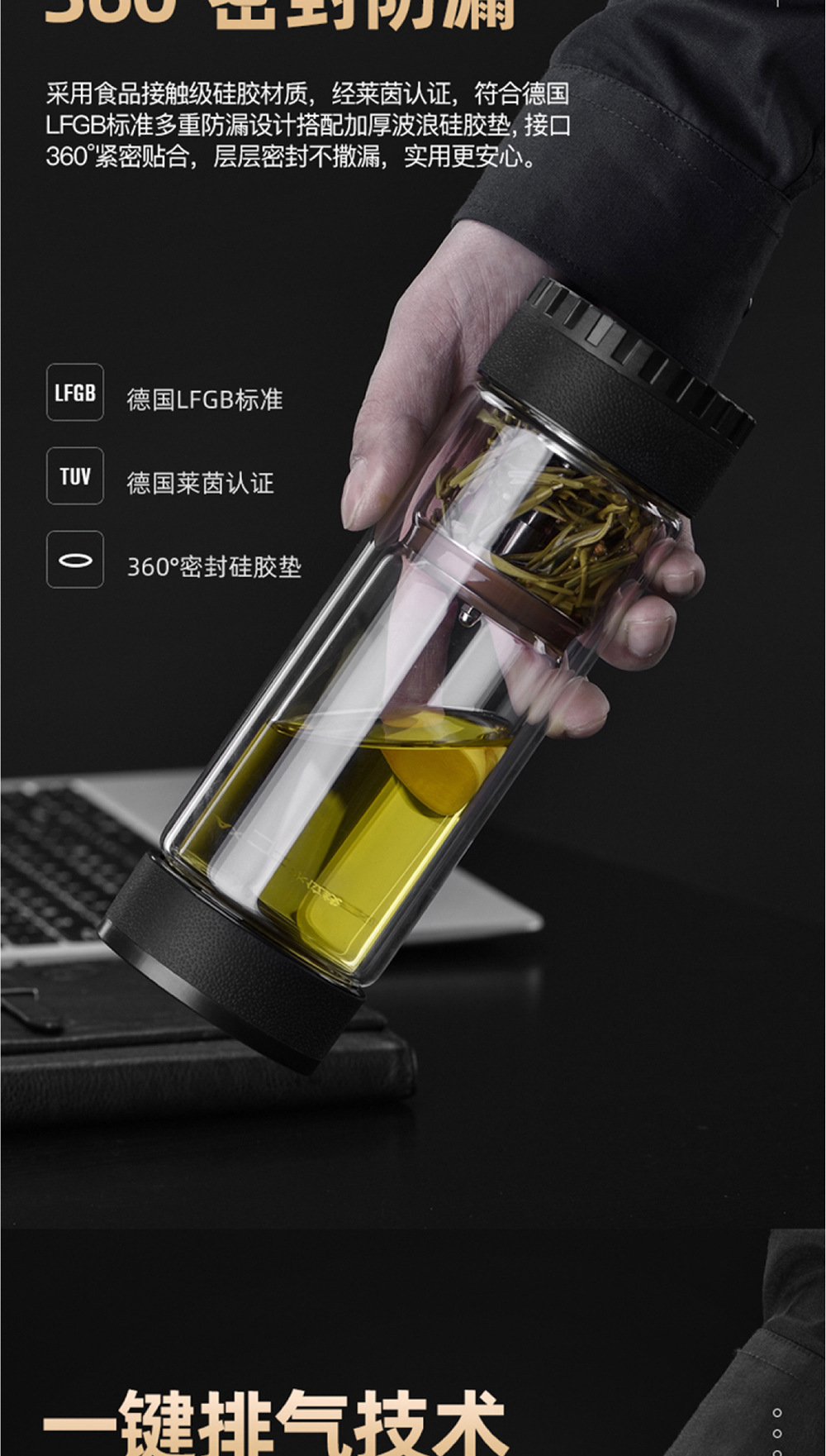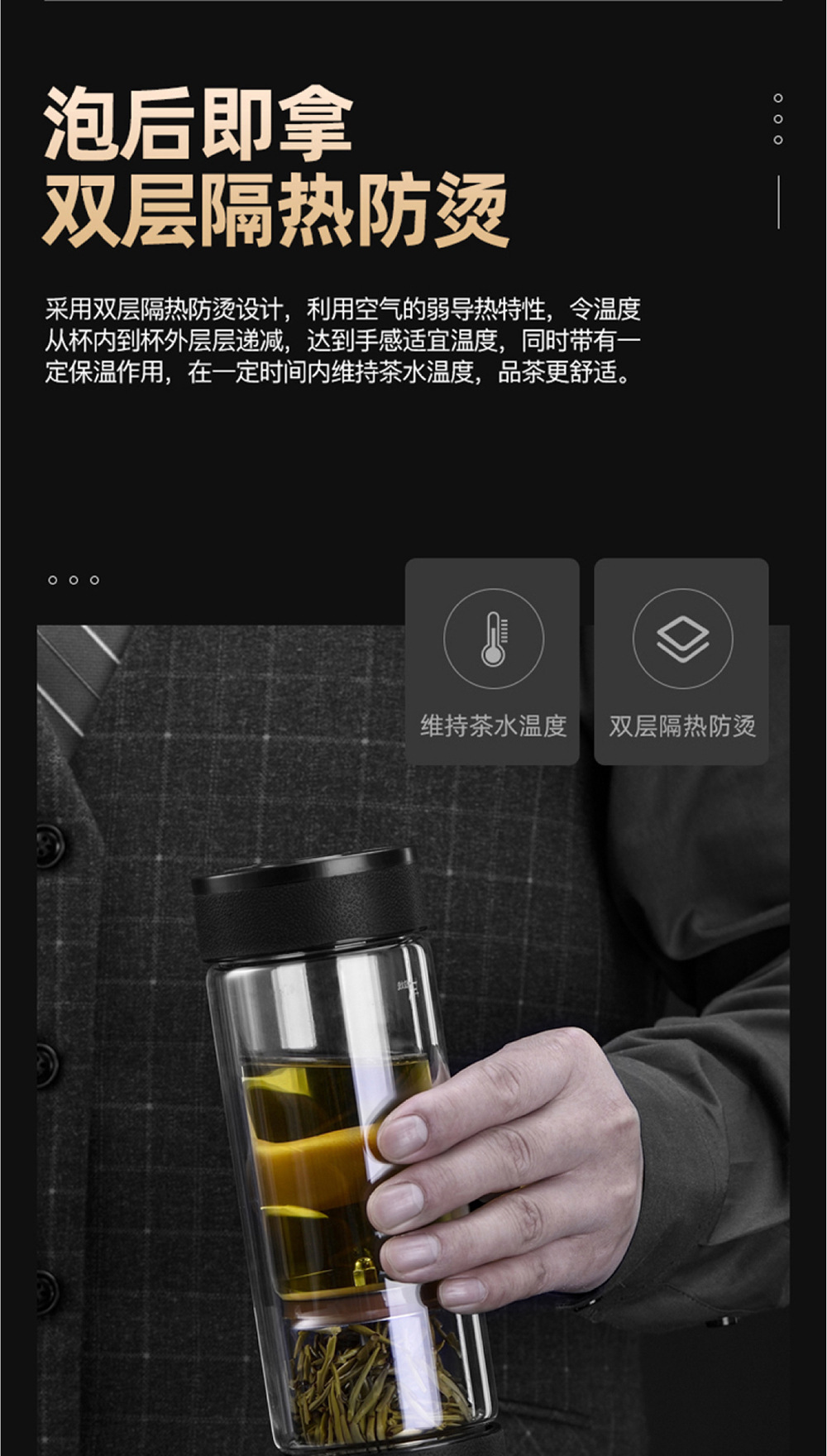 茶水分離泡茶師商務(wù)雙層玻璃杯定制禮品杯旋轉(zhuǎn)開關(guān)茶杯印logo水杯