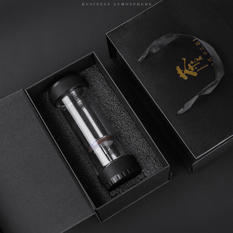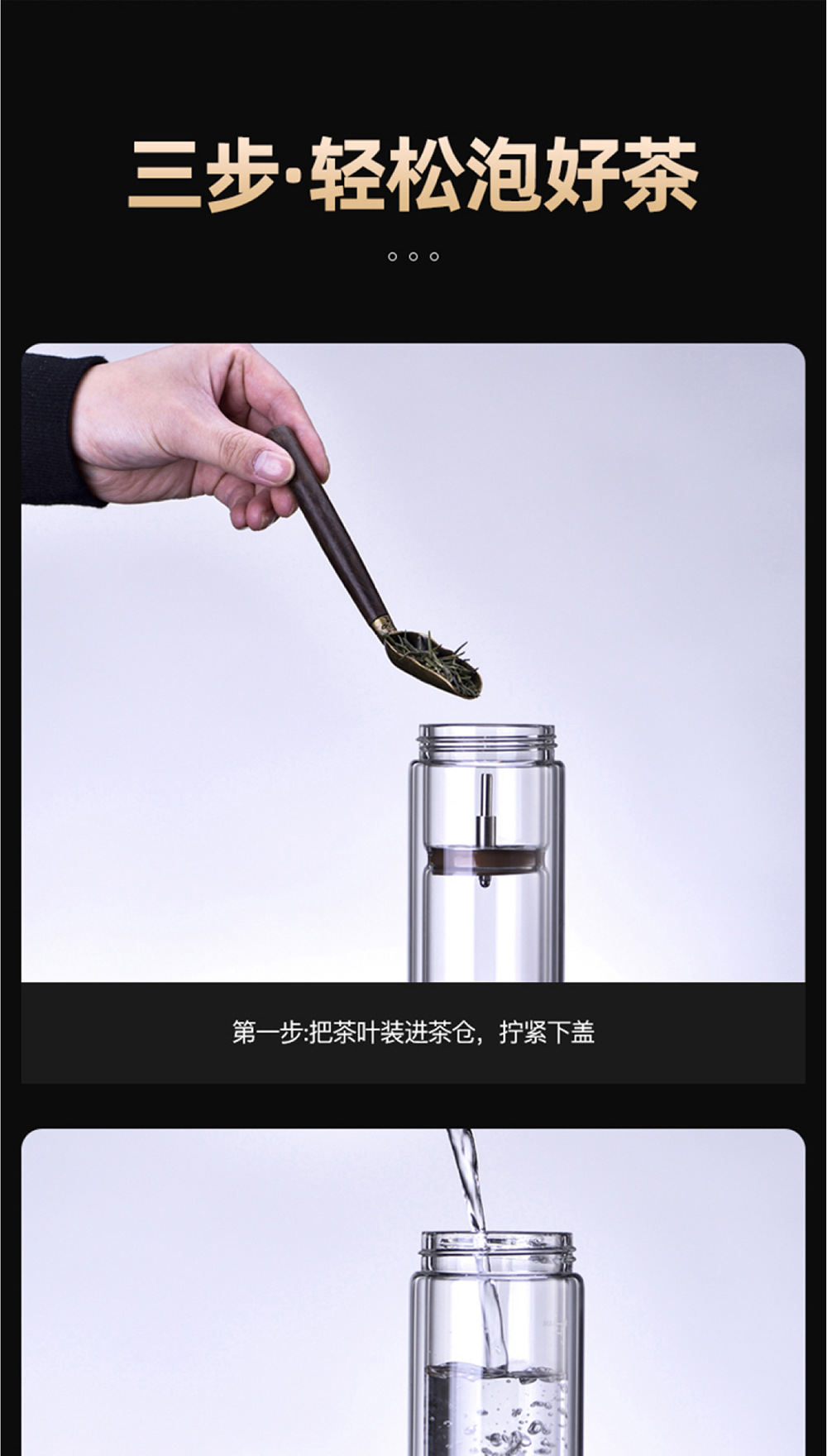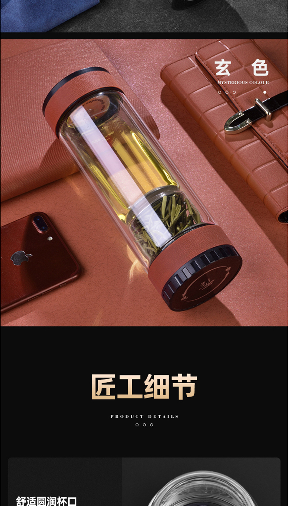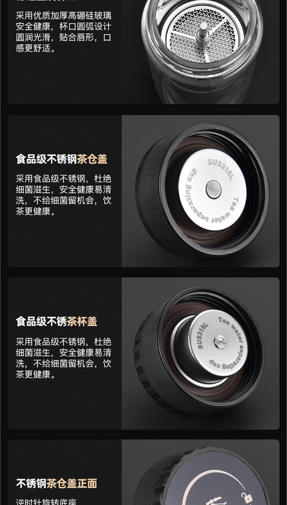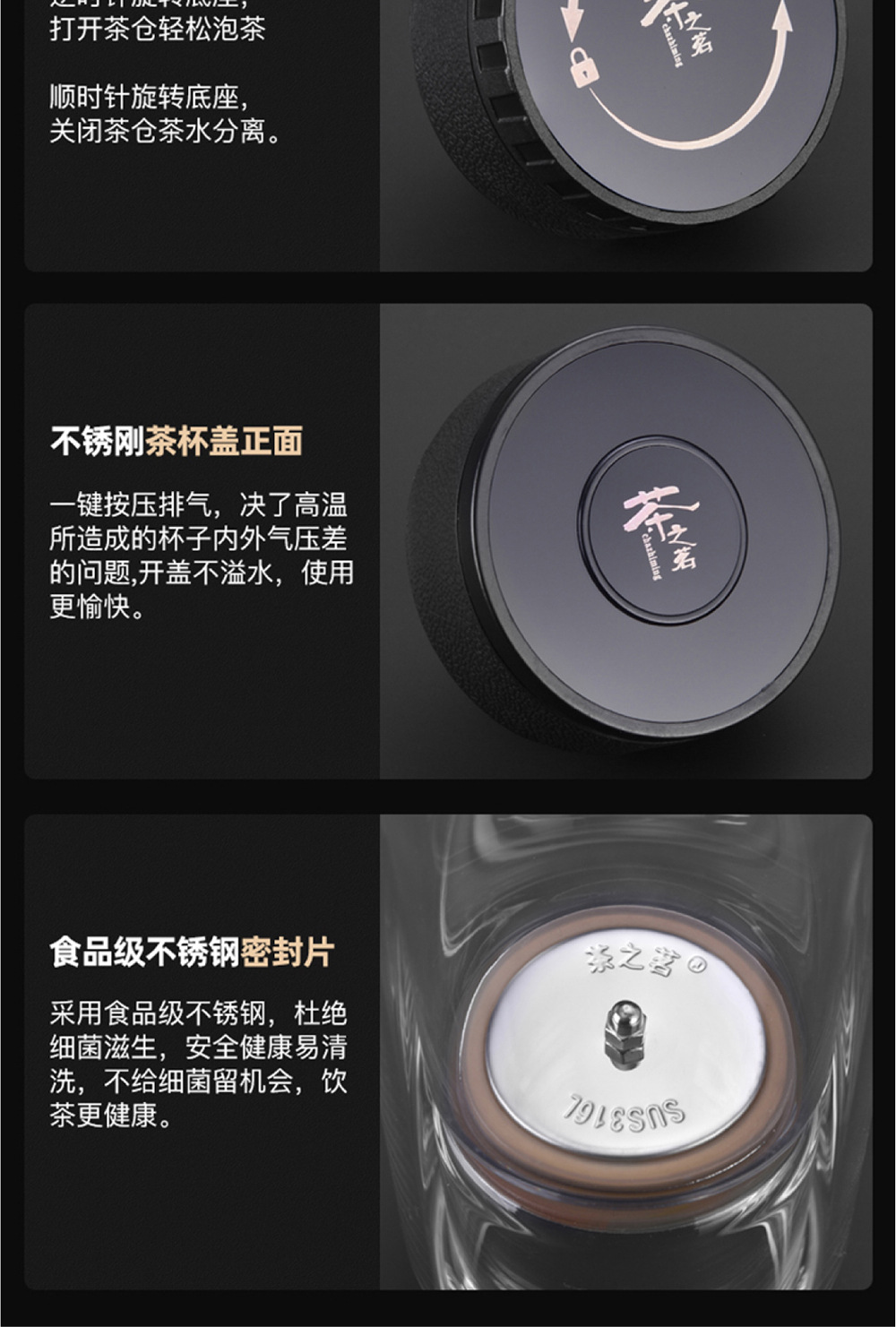 茶水分離泡茶師商務(wù)雙層玻璃杯定制禮品杯旋轉(zhuǎn)開關(guān)茶杯印logo水杯