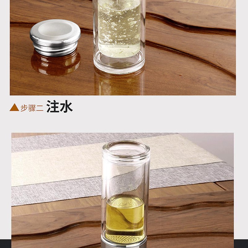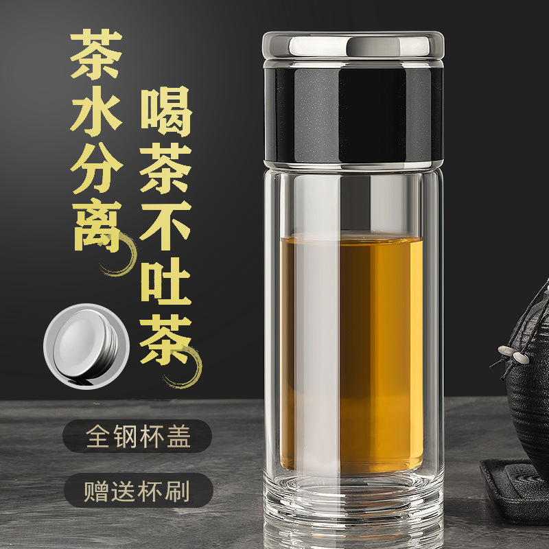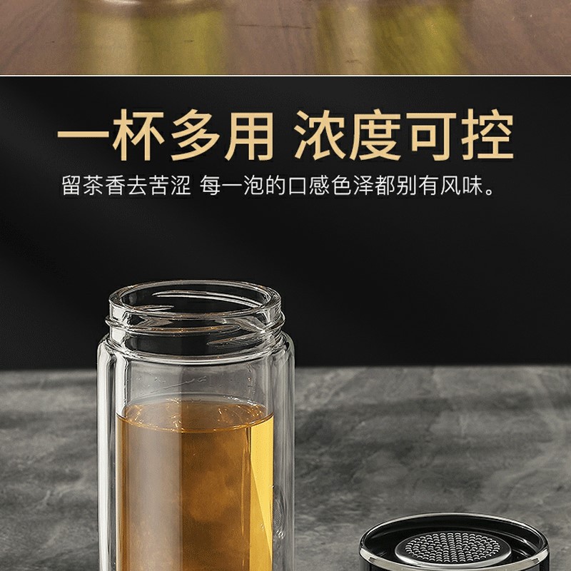 網(wǎng)紅茶水分離杯雙層玻璃杯家用透明玻璃水杯商務(wù)禮品茶杯隔熱
