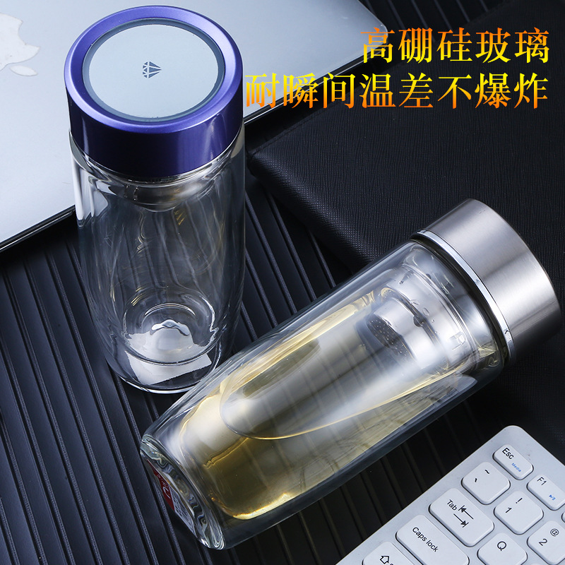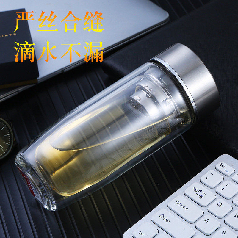 雙層玻璃杯子鵝蛋杯茶杯批發(fā)辦公杯會(huì)議室泡茶杯廣告禮品玻璃水杯
