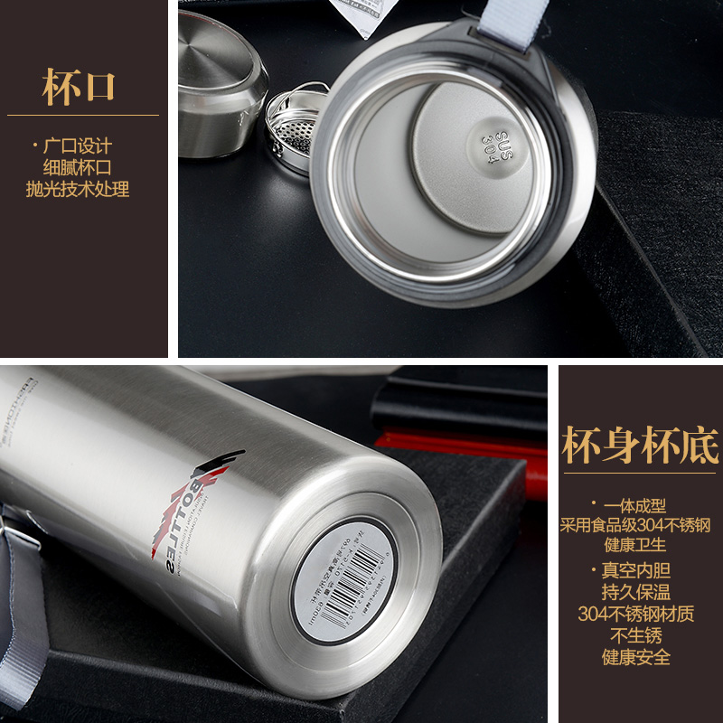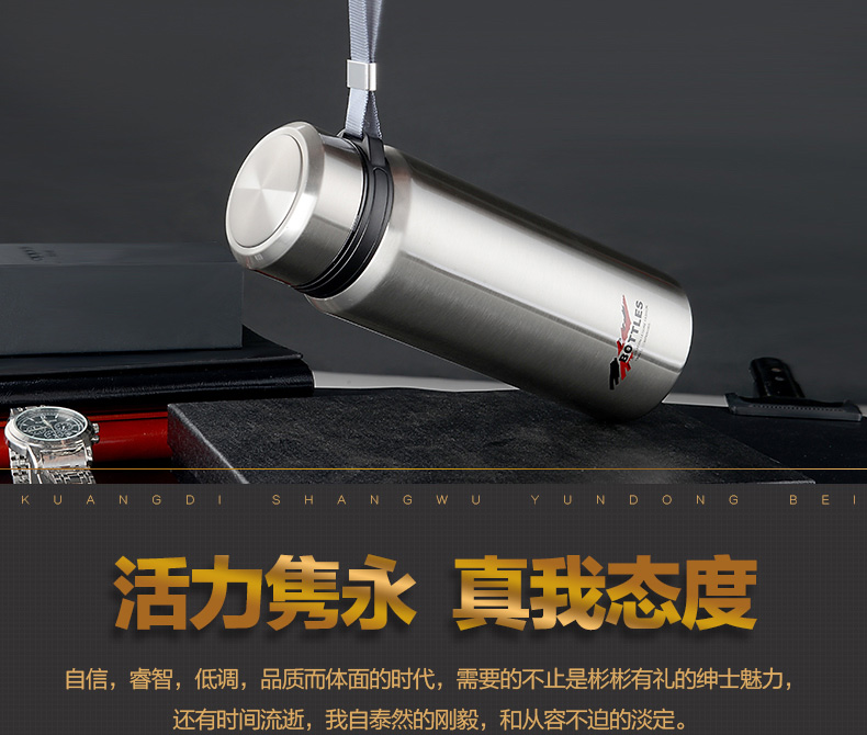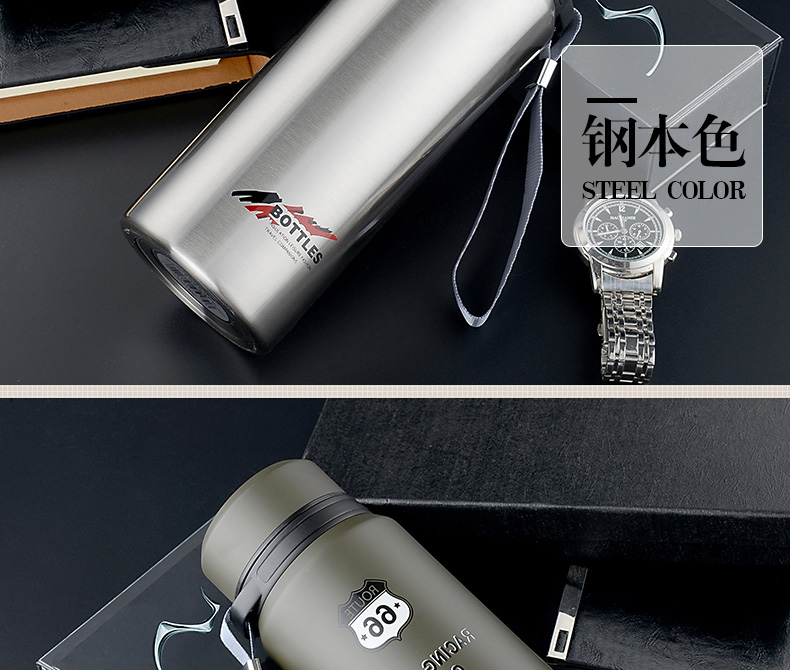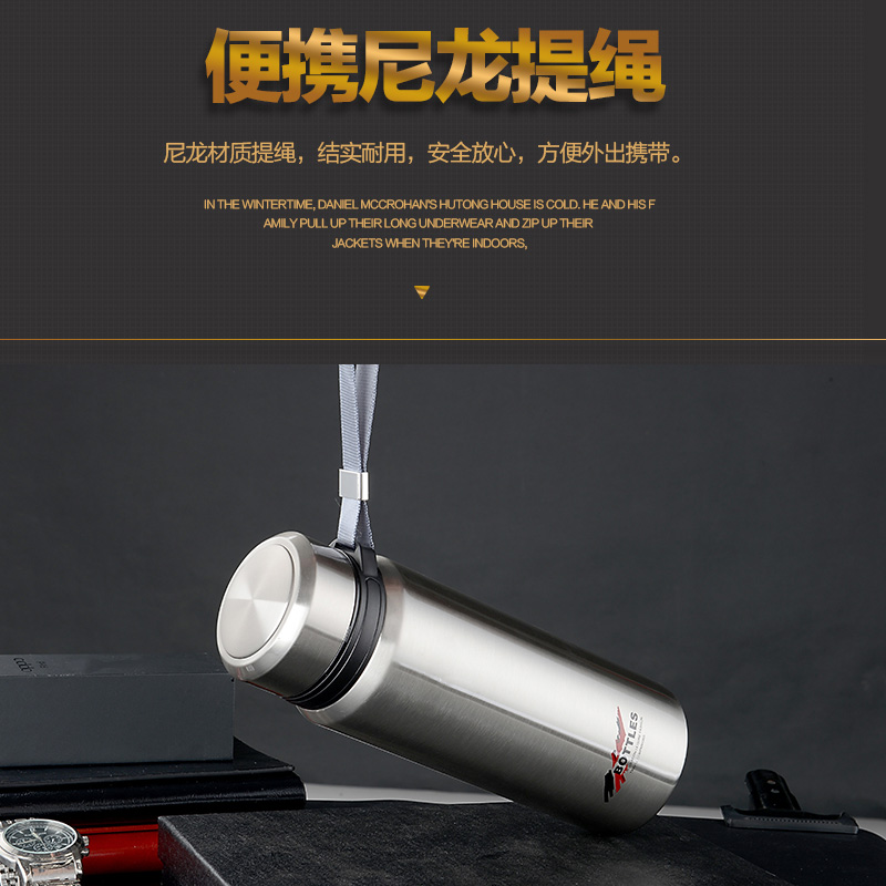真空保溫杯創(chuàng)意禮高檔不銹鋼子彈頭戶外隨行吊帶定制水壺杯子
