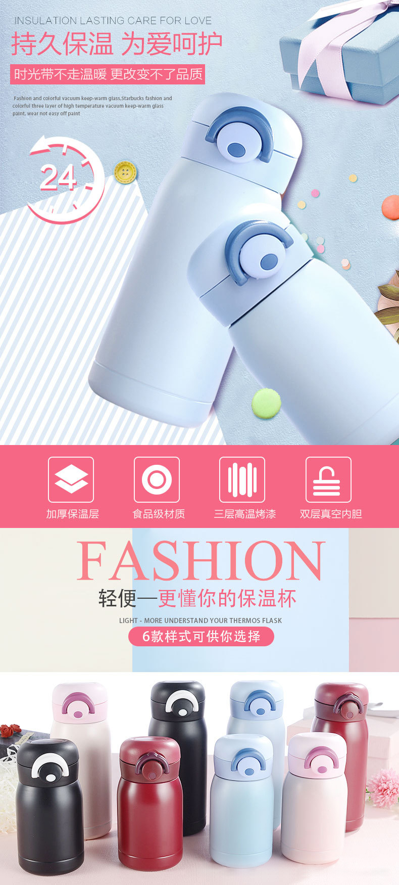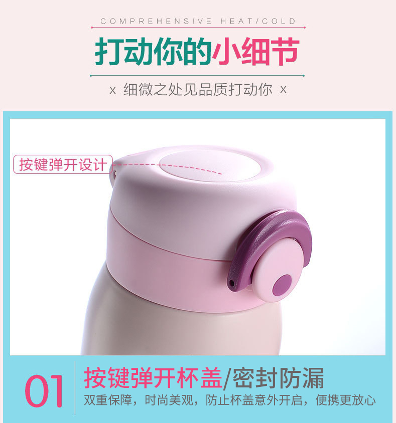可愛彈跳不銹鋼雙層保溫杯304新款學生彈跳杯兒童隨手杯