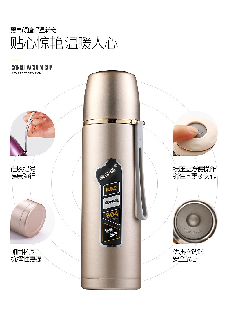 新款子彈頭水杯304不銹鋼真空保溫杯創(chuàng)意禮品杯子可定制日用百貨