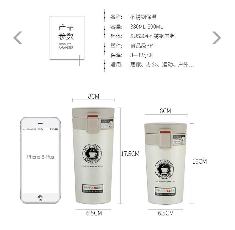 辦公車載保溫杯 時尚男女士便攜學(xué)生直身水杯不銹鋼真空咖啡杯子