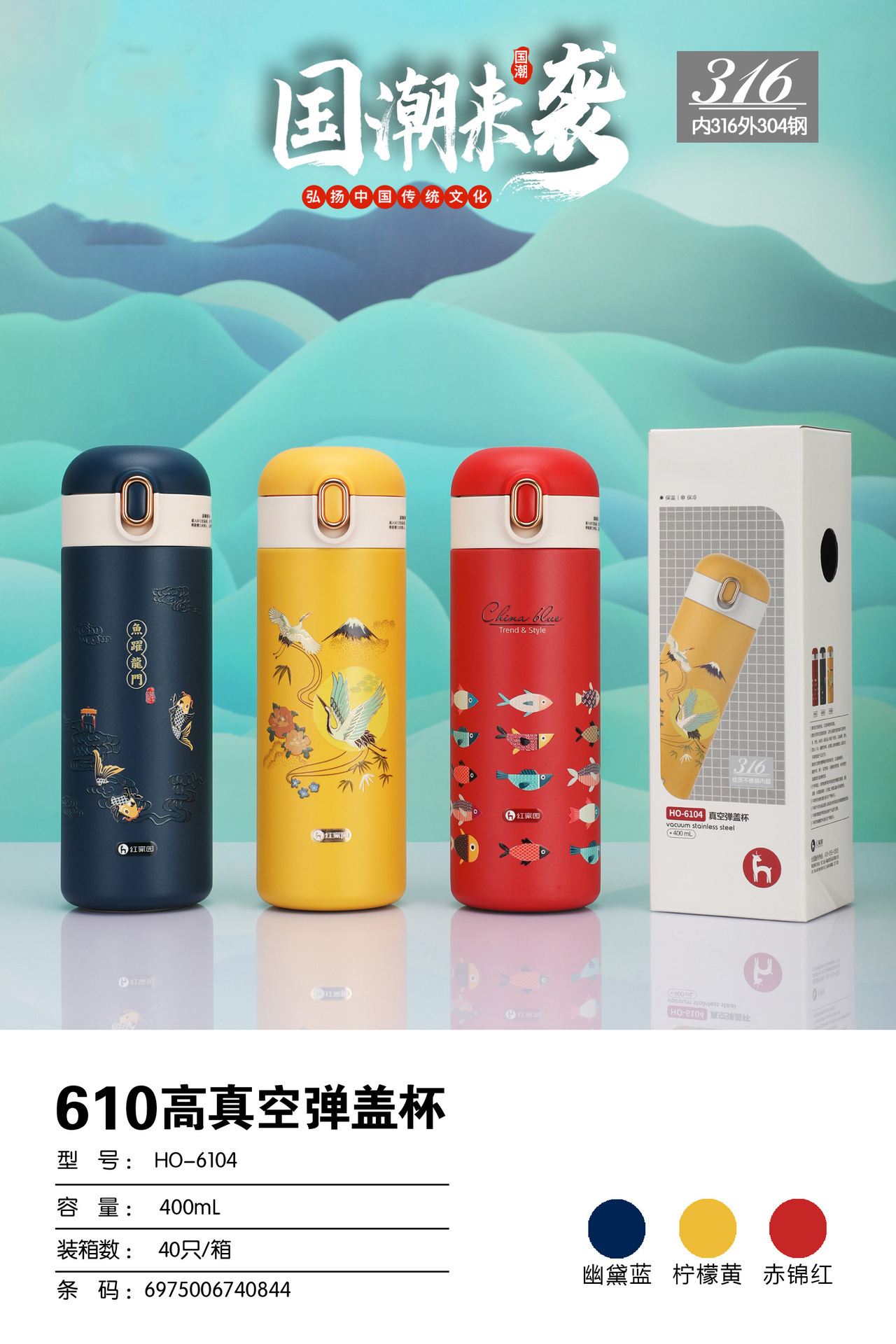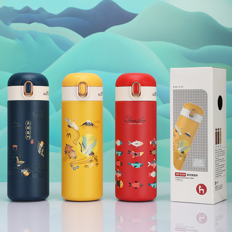 316不銹鋼真空保溫杯中國風(fēng)潮彈蓋車載杯LOGO