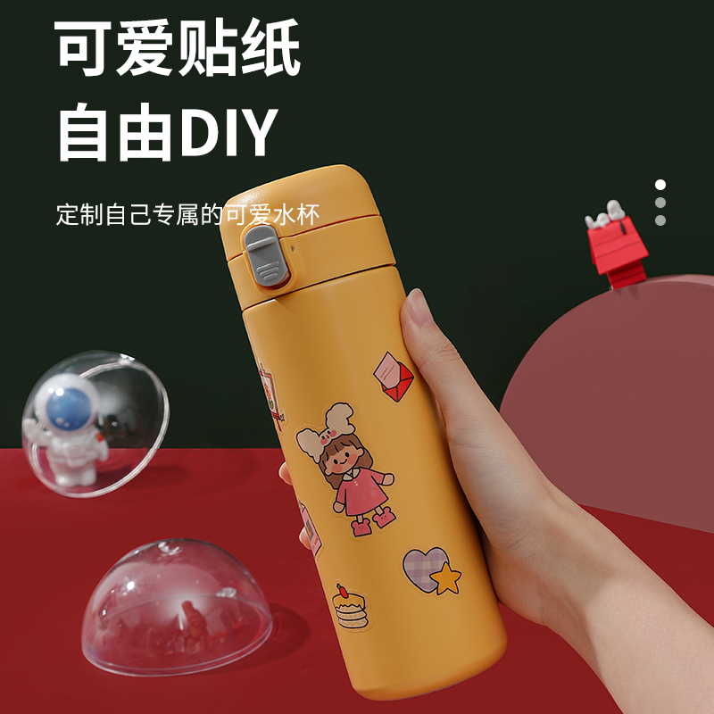 新款豌豆杯簡約時尚便攜彈跳杯蓋車載保溫杯304不銹鋼DIY水杯直飲