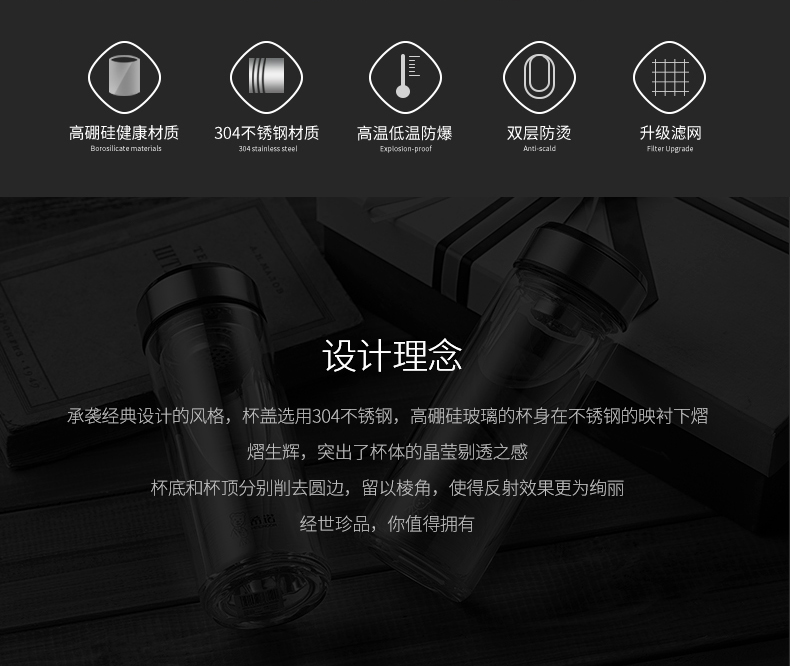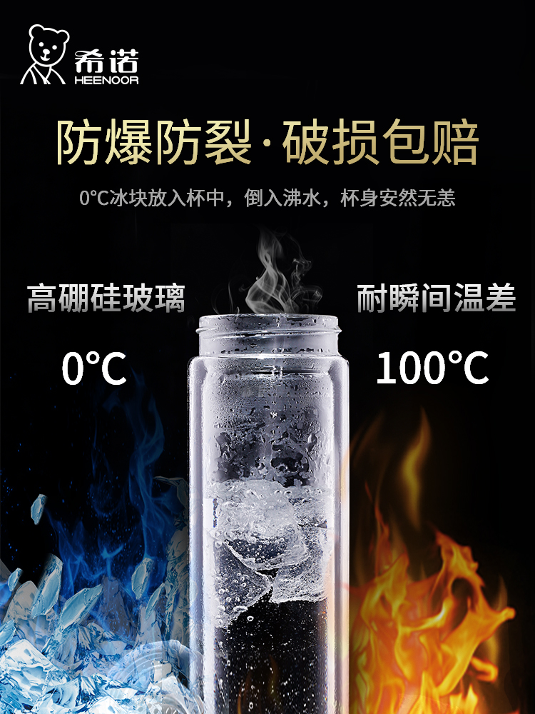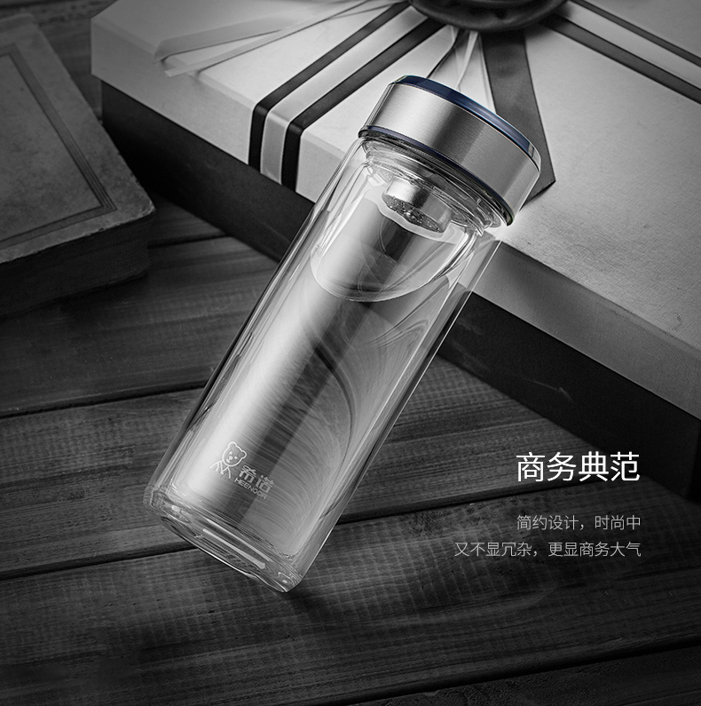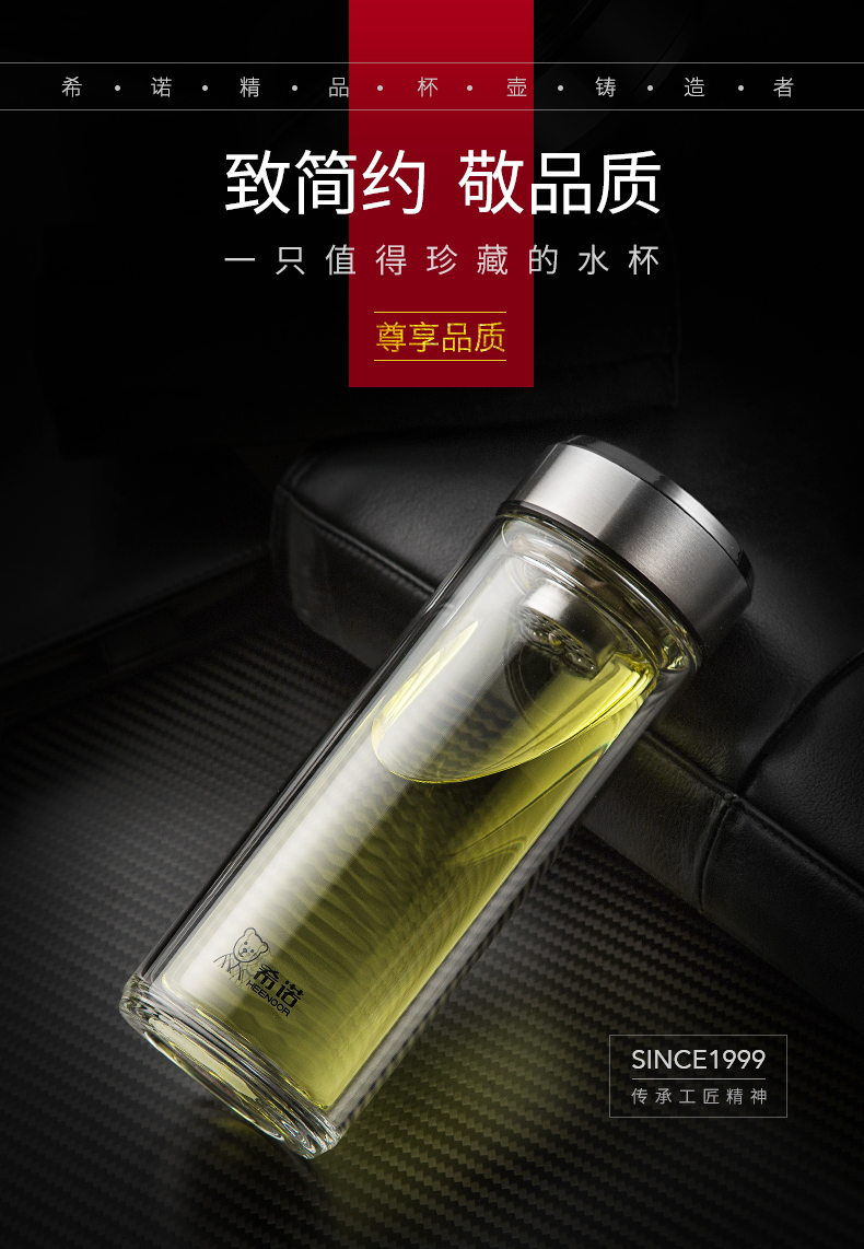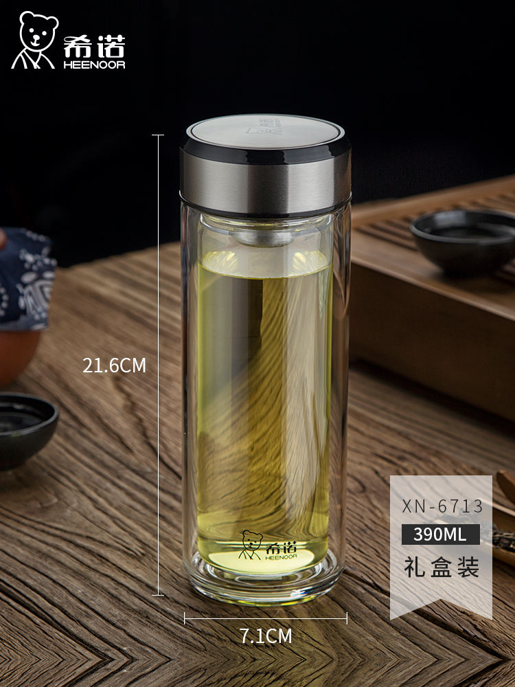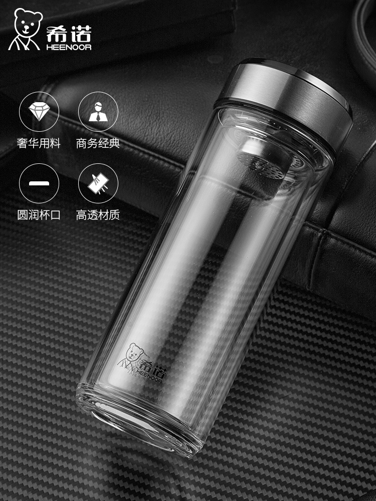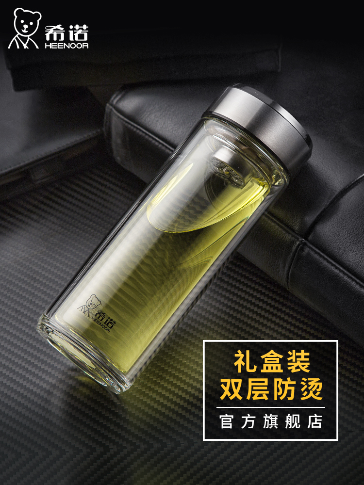 希諾雙層玻璃杯茶水分離水杯男家用透明過濾泡茶杯子高檔送禮商務(wù)