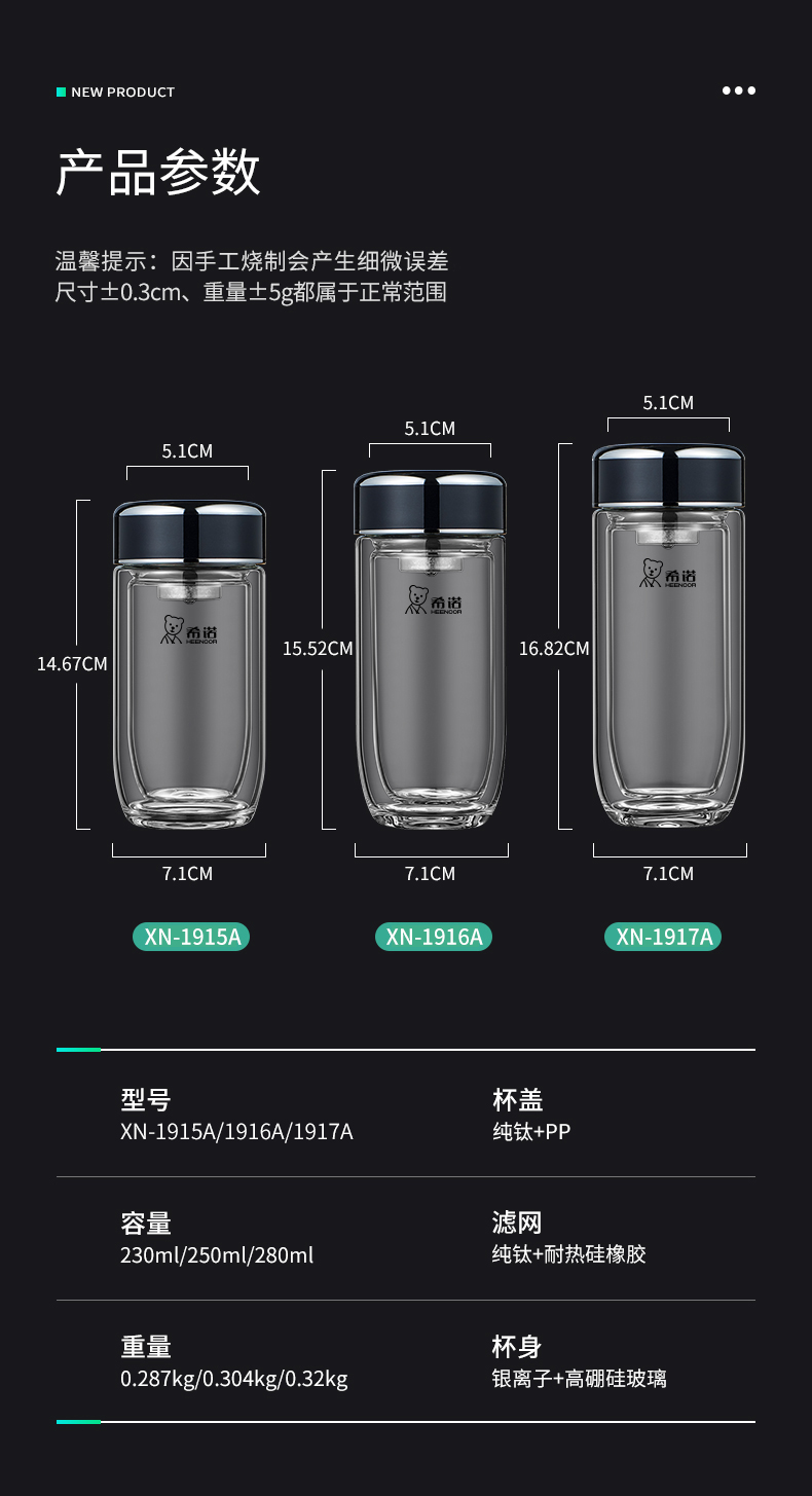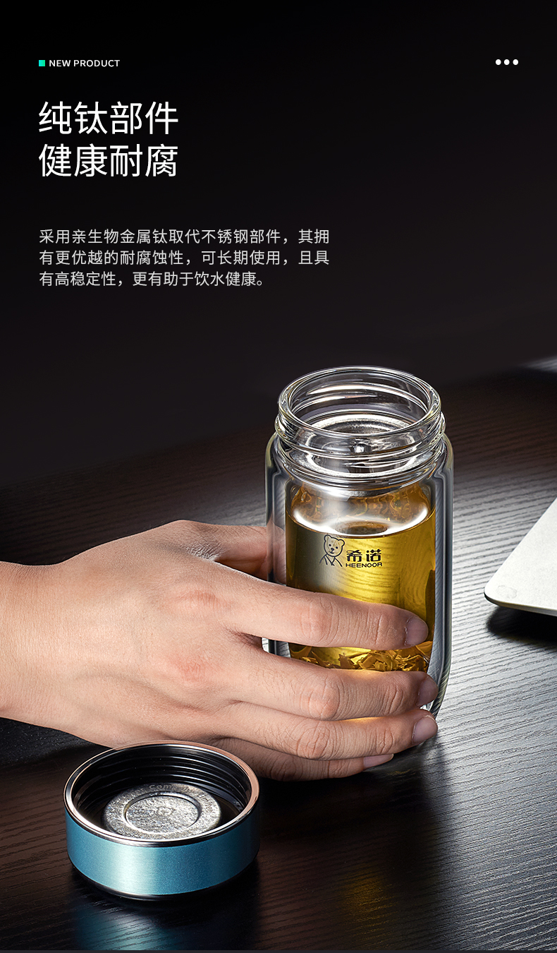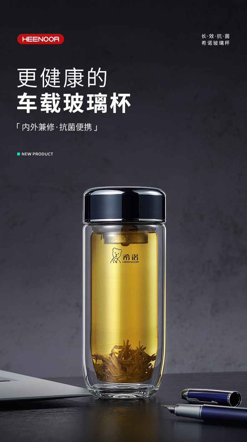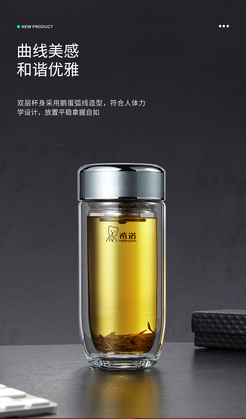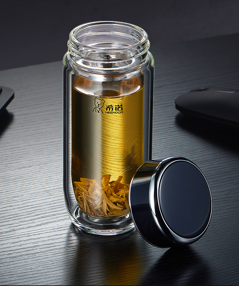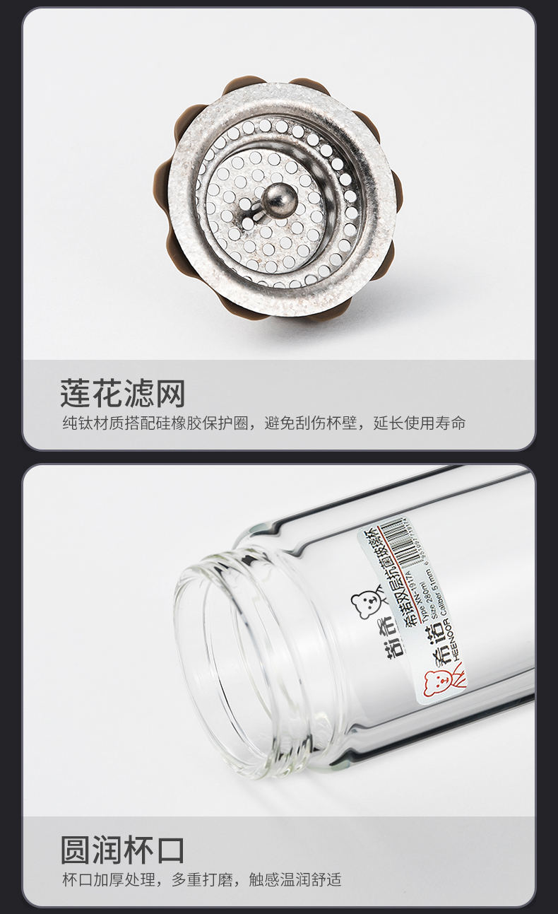 希諾雙層抗菌玻璃杯隔熱男女士高檔車(chē)載水杯便攜杯子帶濾網(wǎng)茶杯