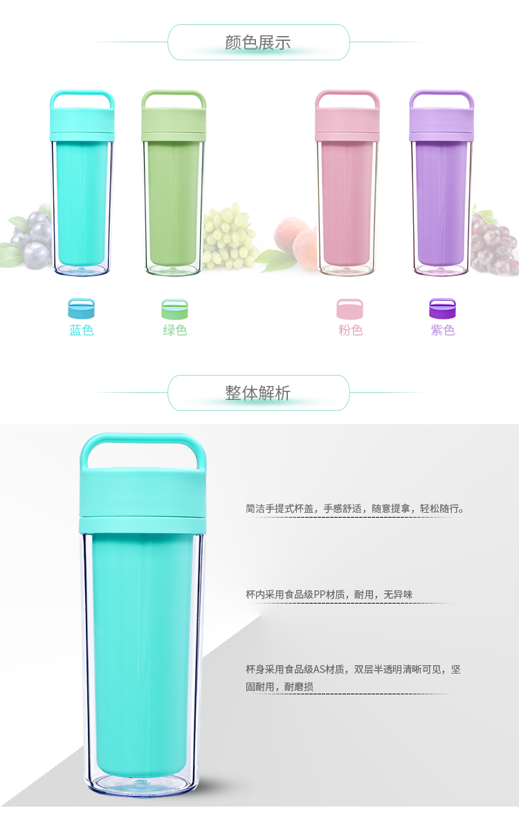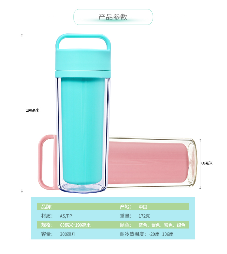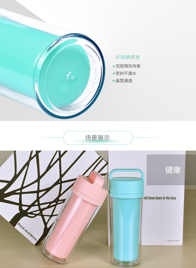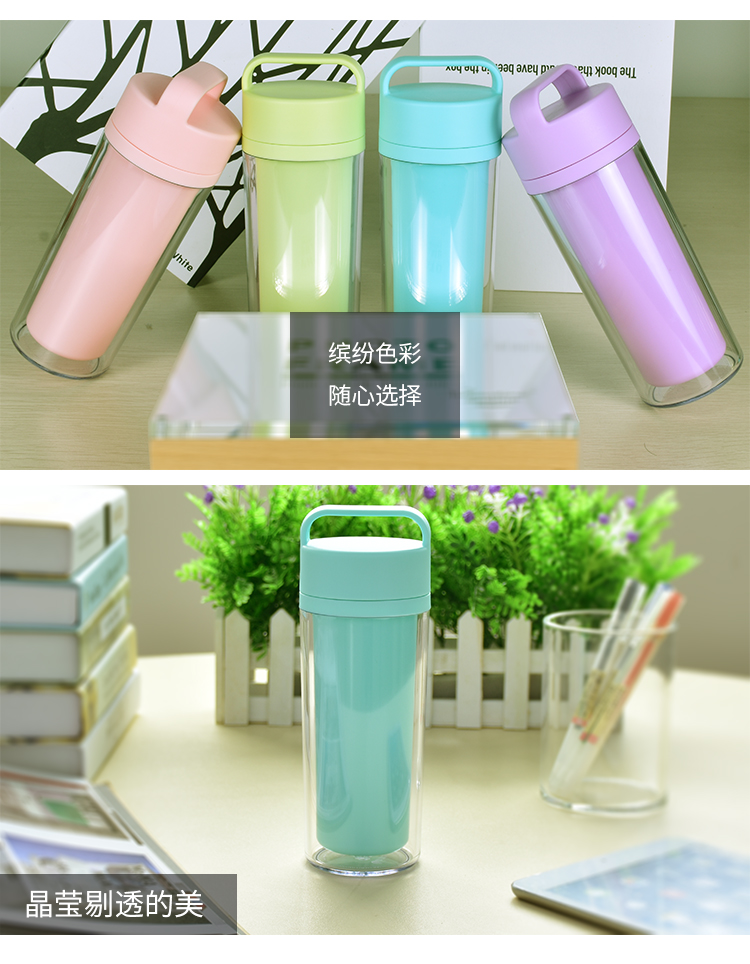 運(yùn)動水杯 便攜防漏隨手杯 學(xué)生杯子 情侶創(chuàng)意水杯子 雙層塑料杯子 300ml