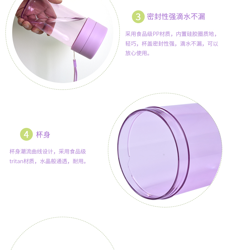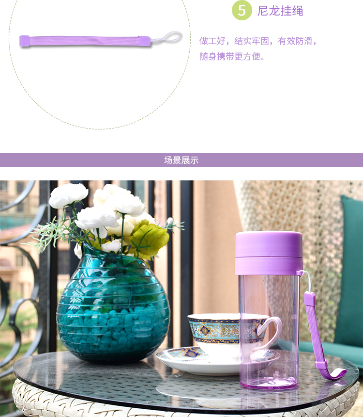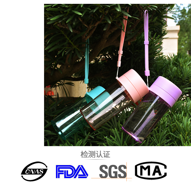 塑料杯子防漏 學(xué)生水杯帶茶隔 運(yùn)動(dòng)水杯trian材質(zhì) 隨身杯帶提繩360ml