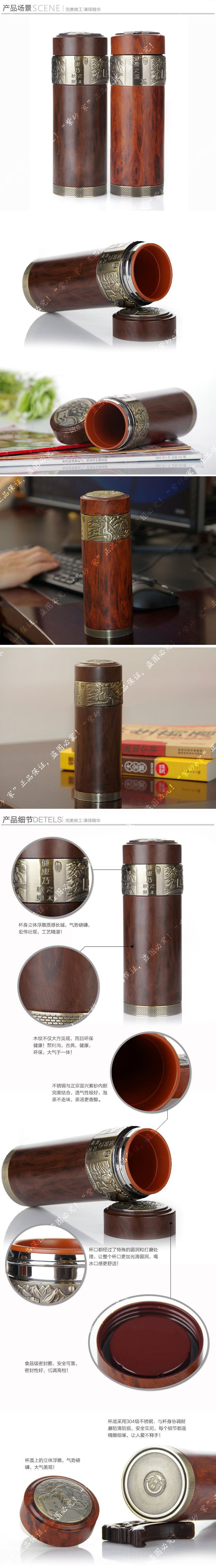 宜興紫砂保溫杯 木紋長城紫砂禮品杯